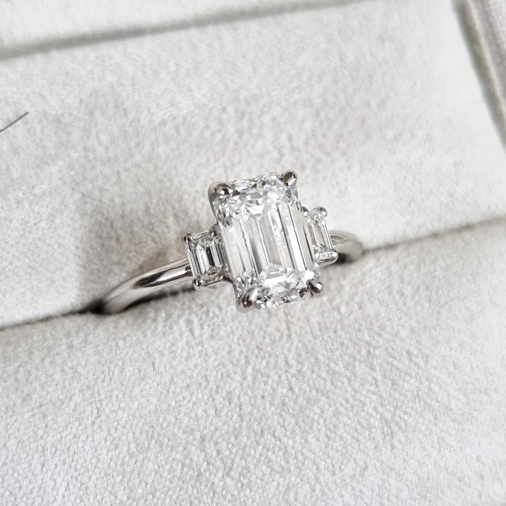 1.30-3.30 CT Emerald Lab Grown Diamond Three Stone Engagement Ring