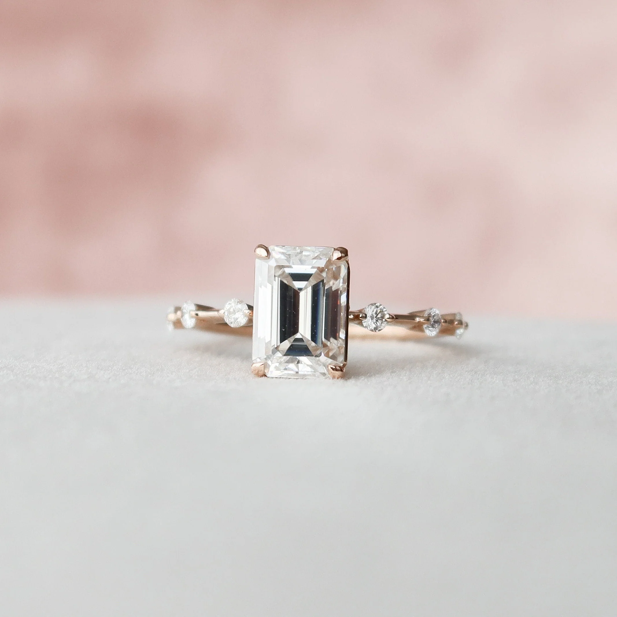 2.0 CT Emerald Cut Dainty Moissanite Engagement Ring