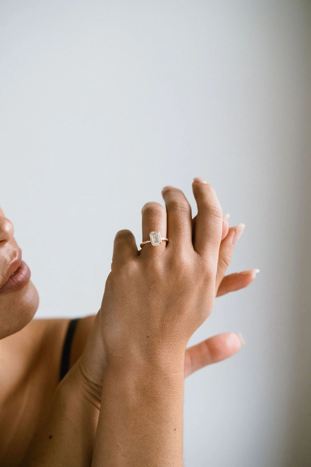 1.0-3.0 CT Emerald Lab Grown Diamond Bezel Engagement Ring
