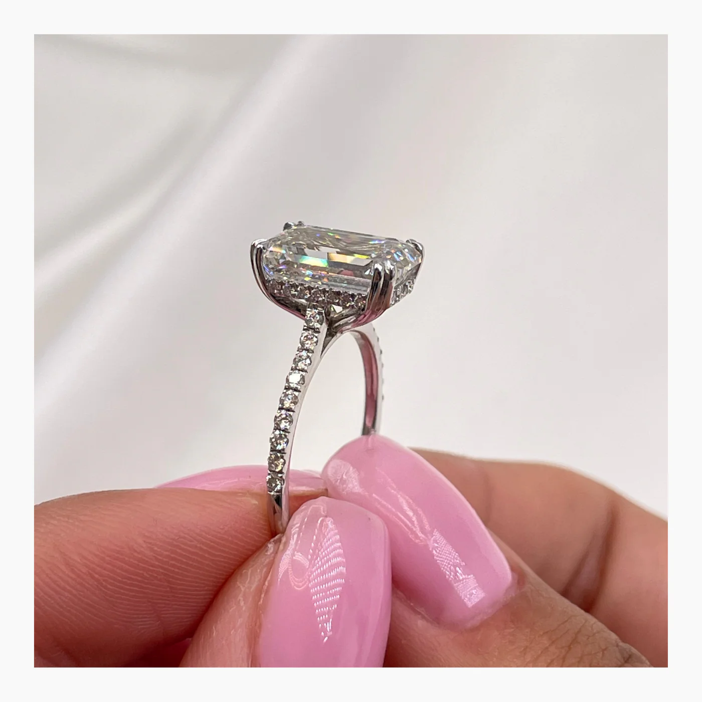 2.50-5.0 CT Emerald Lab Grown Diamond Pave Engagement Ring