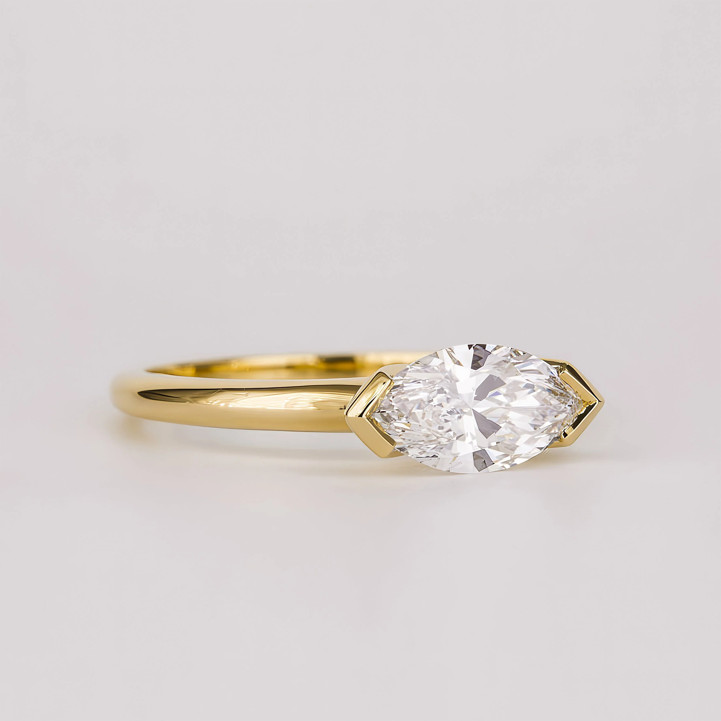 1.07 -3.0 CT Marquise Lab Grown Diamond Bezel Engagement ring
